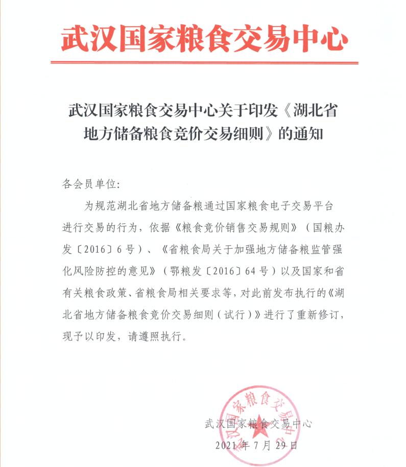 湖北粮网关于印发《湖北省地方储备粮食竞价交易细则》的通知